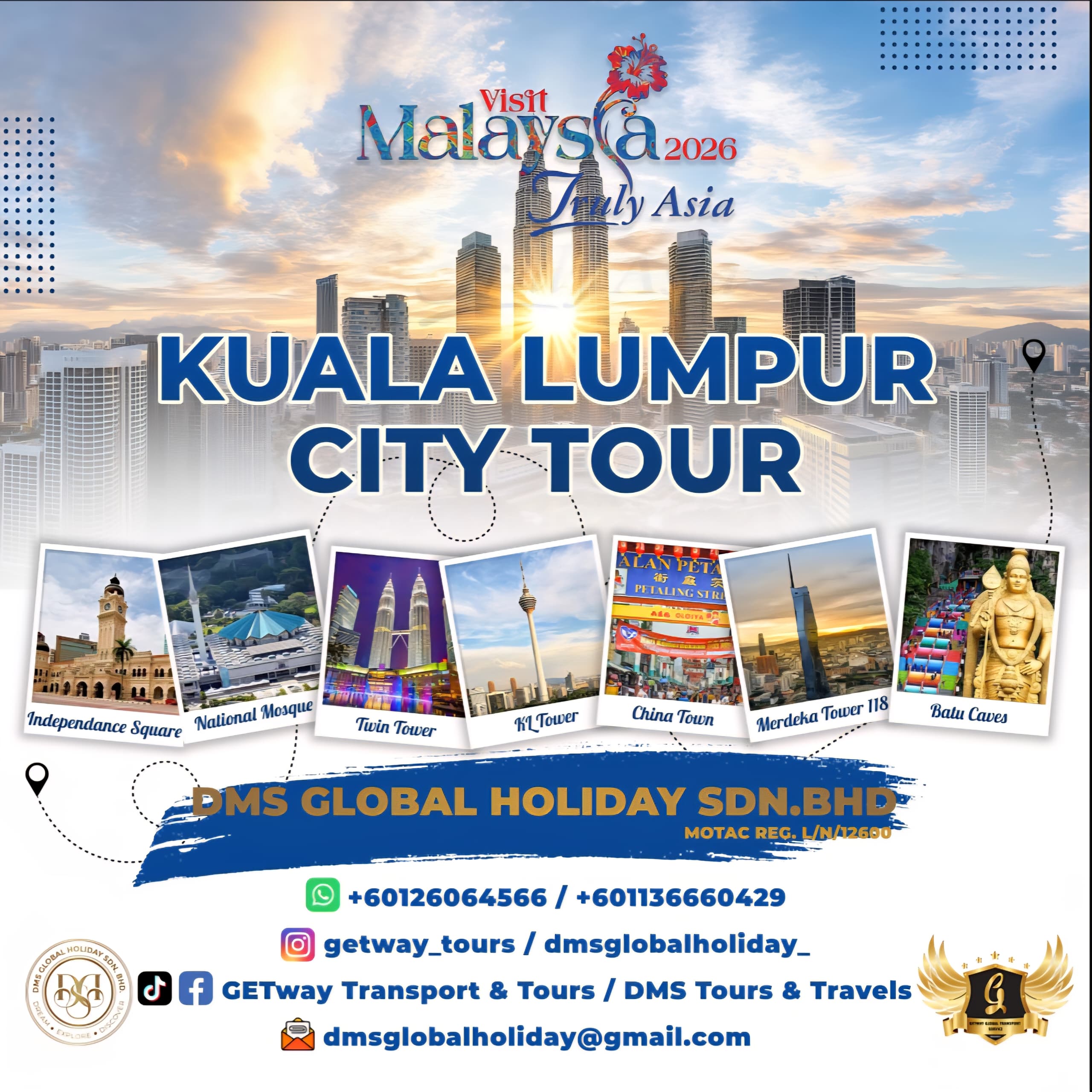 Booking with us is easy! You can call or WhatsApp us at +6012 606 4566, email us at dmsglobalholiday@gmail.com, or fill out the contact form on our website. Our team will respond promptly to confirm your booking and discuss your travel requirements.